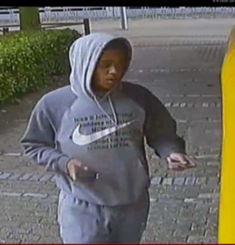 Deze verdachte staat op beeld bij de pinautomaat op 5 september 2020 omstreeks 16.33 uur aan de Thomas Morelaan in Rotterdam. Hij draagt een trainingspak van Nike en loopt op slippers.